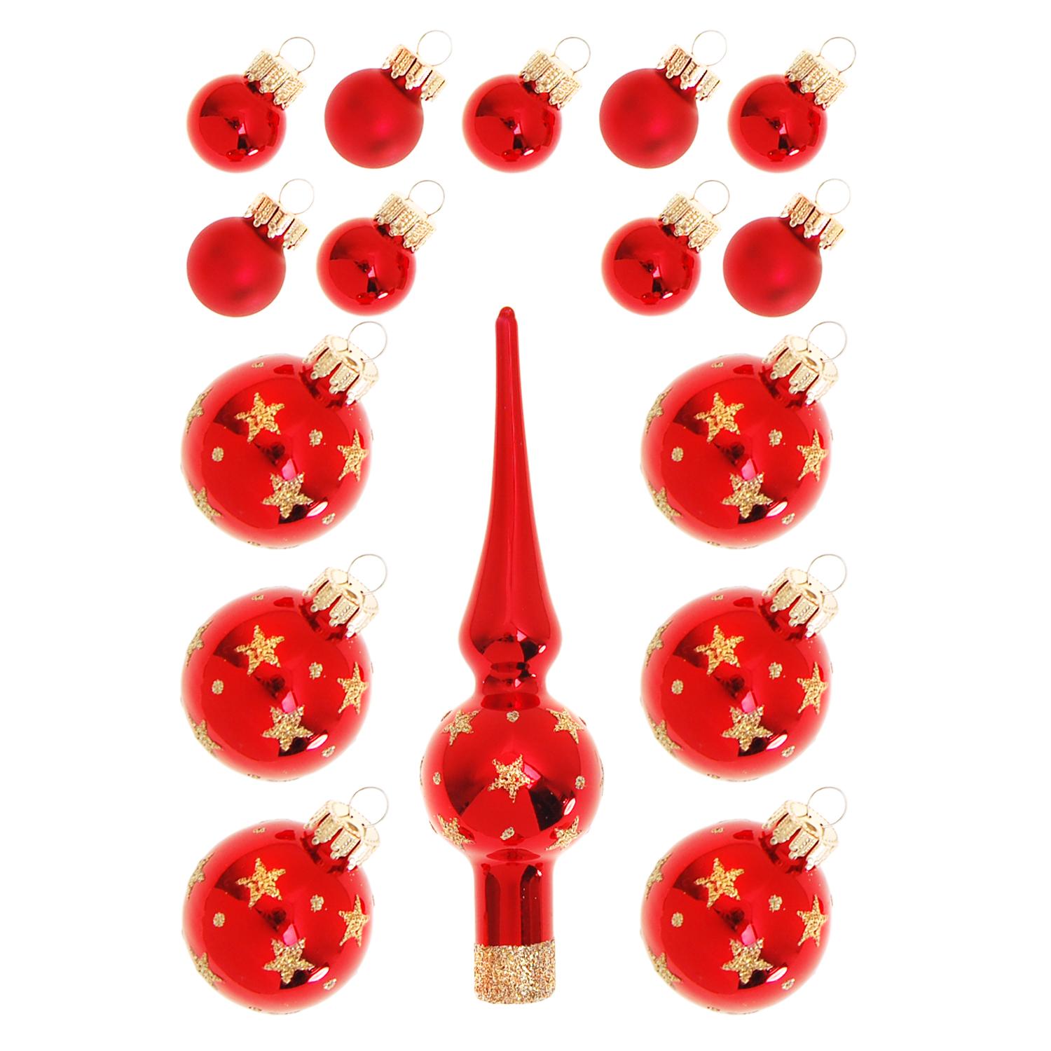 Dieses handdekorierte Set enthält 15 Kugeln in verschiedenen Größen von 2cm bis 3cm und eine elegante Spitze von 12cm, alles aus hochwertigem Glas gefertigt. Perfekt zum Dekorieren eines kleinen Weihnachtsbaumes.