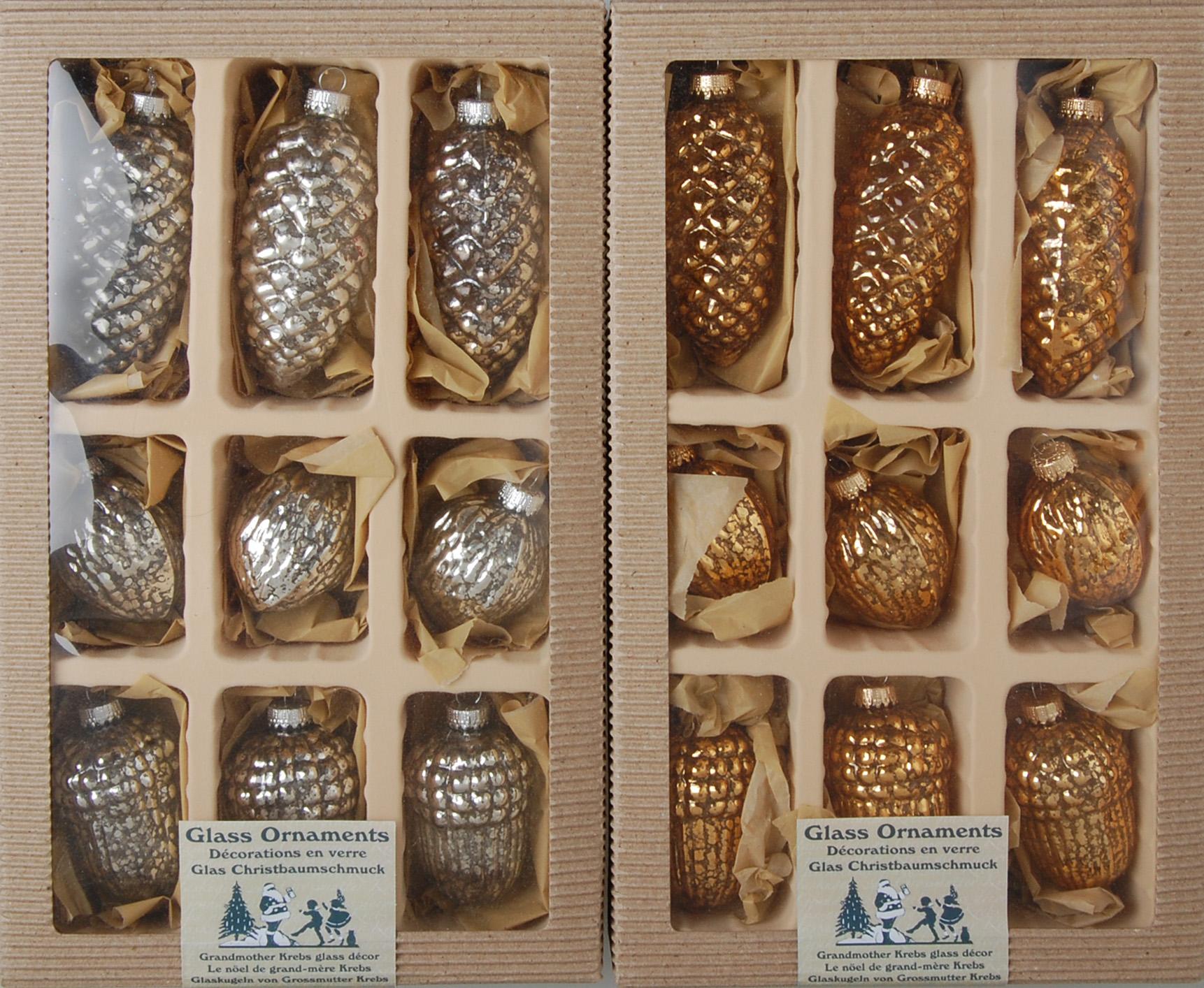 Titel | Baumschmuck Zapfen, Eichel, Walnuss-Sortiment Mercury goldfarbig 10cm |