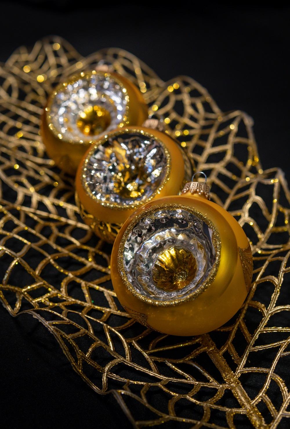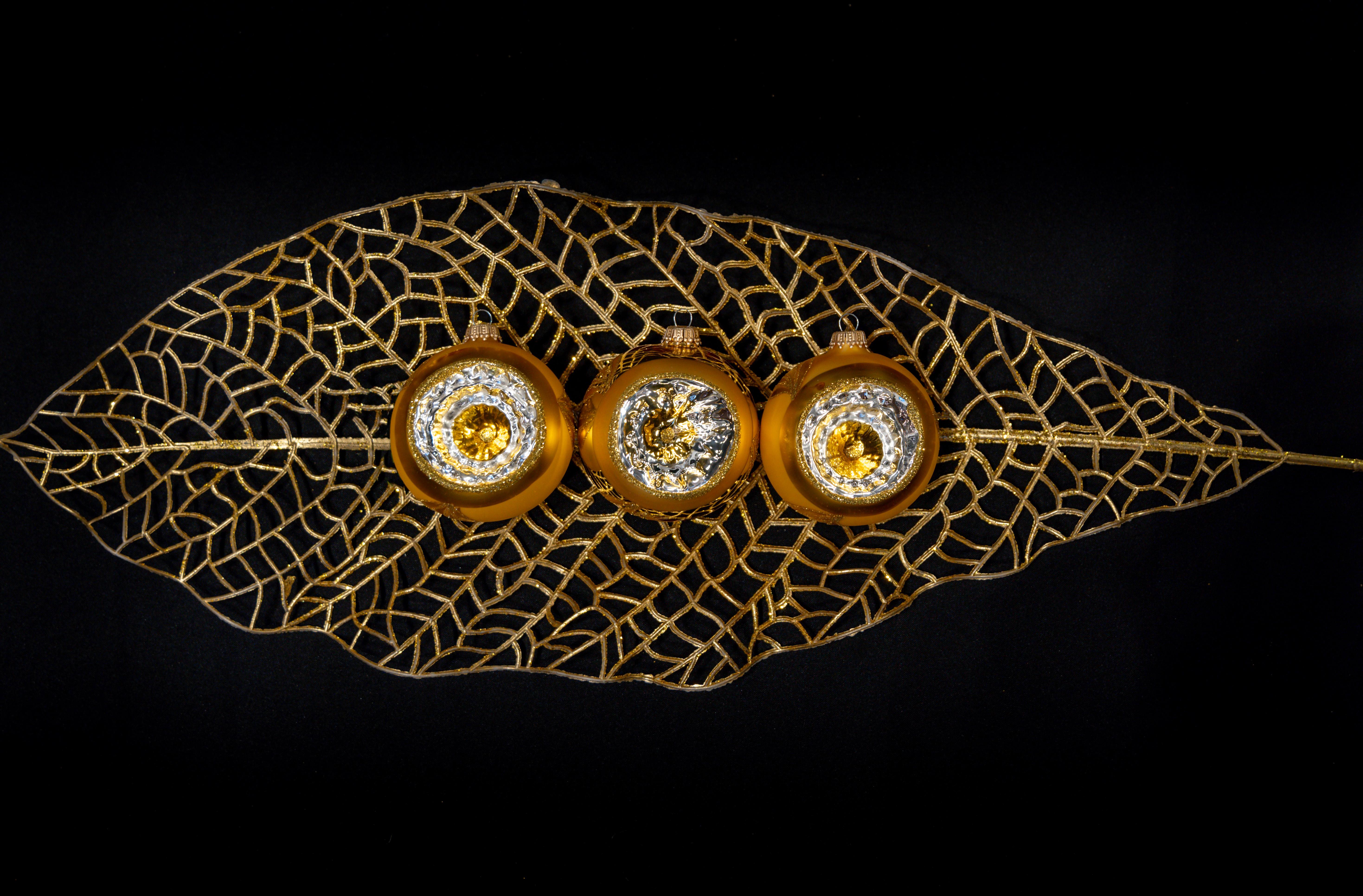 | Titel | Weihnachtskugeln Reflexe Floral Goldfarbig 8cm |
