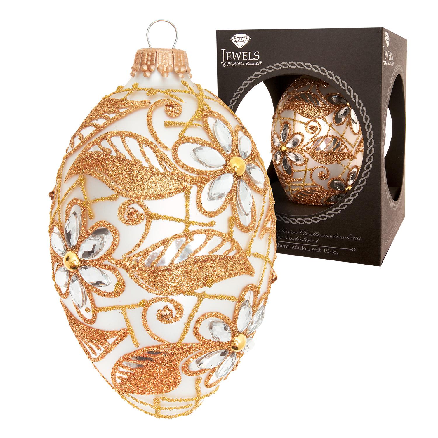 Titel | Baumschmuck Ei-Strassdekor Blumen und Blätter Silberfarbig 10cm |