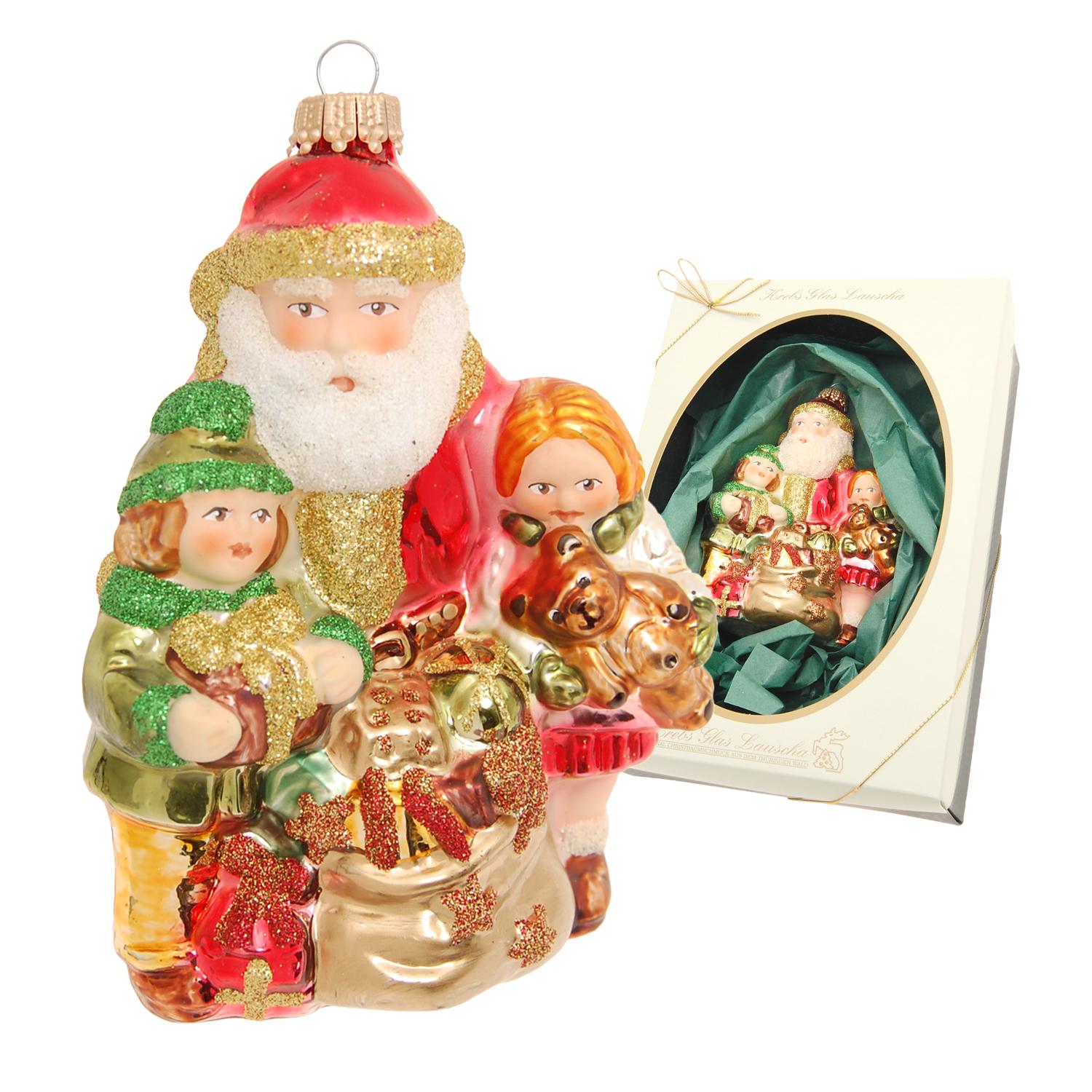 Titel | Baumschmuck Weihnachtsmann mit Sack und Kindern Rot 13cm |