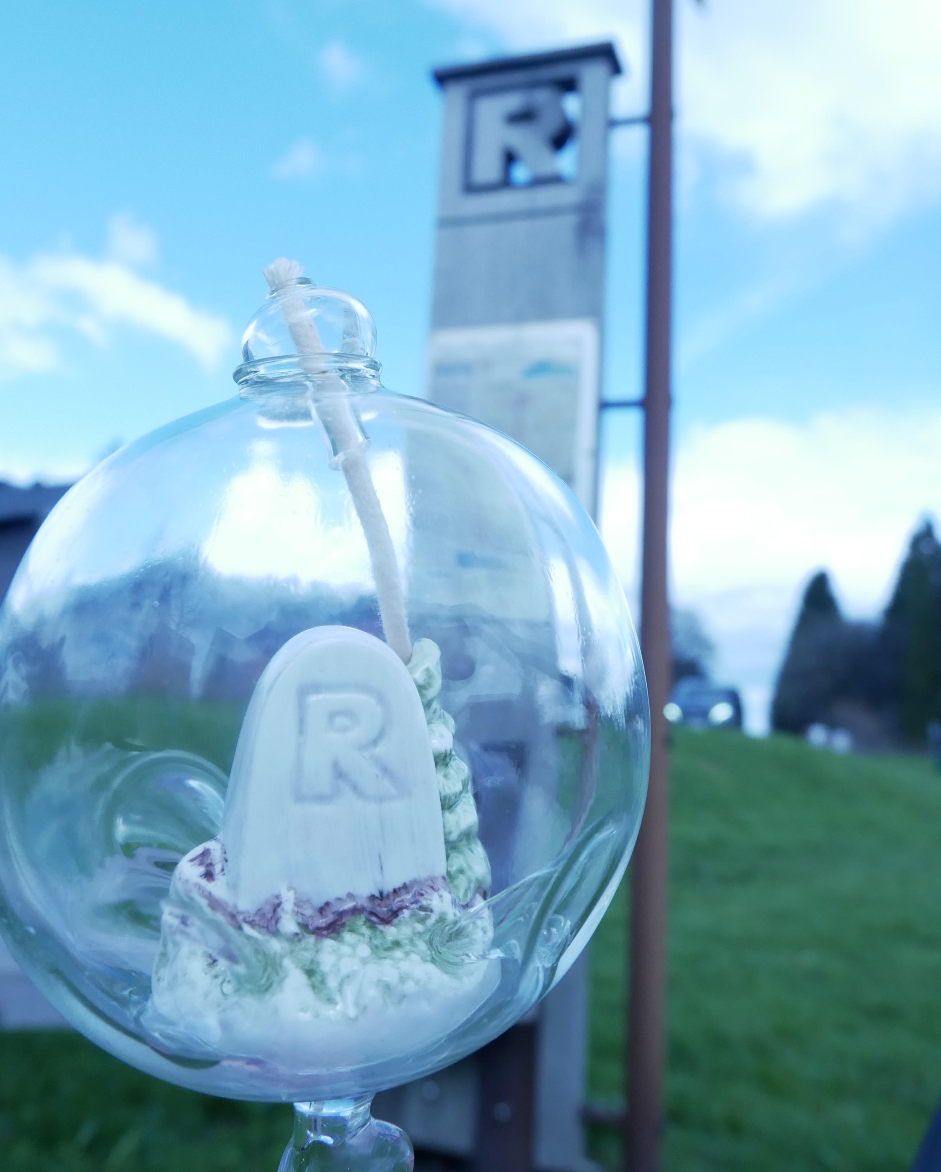 Jede Lampe wird von erfahrenen Glasbläsern mundgeblasen und handgeformt, was zu leichten Unterschieden in Form und Größe führen kann, was sie noch individueller macht. Die Lampe verfügt über eine stilvolle Form und einen Rennsteig-Stein im Inneren, der beim Entzünden des Dochts eine wunderschöne, warme Atmosphäre schafft.