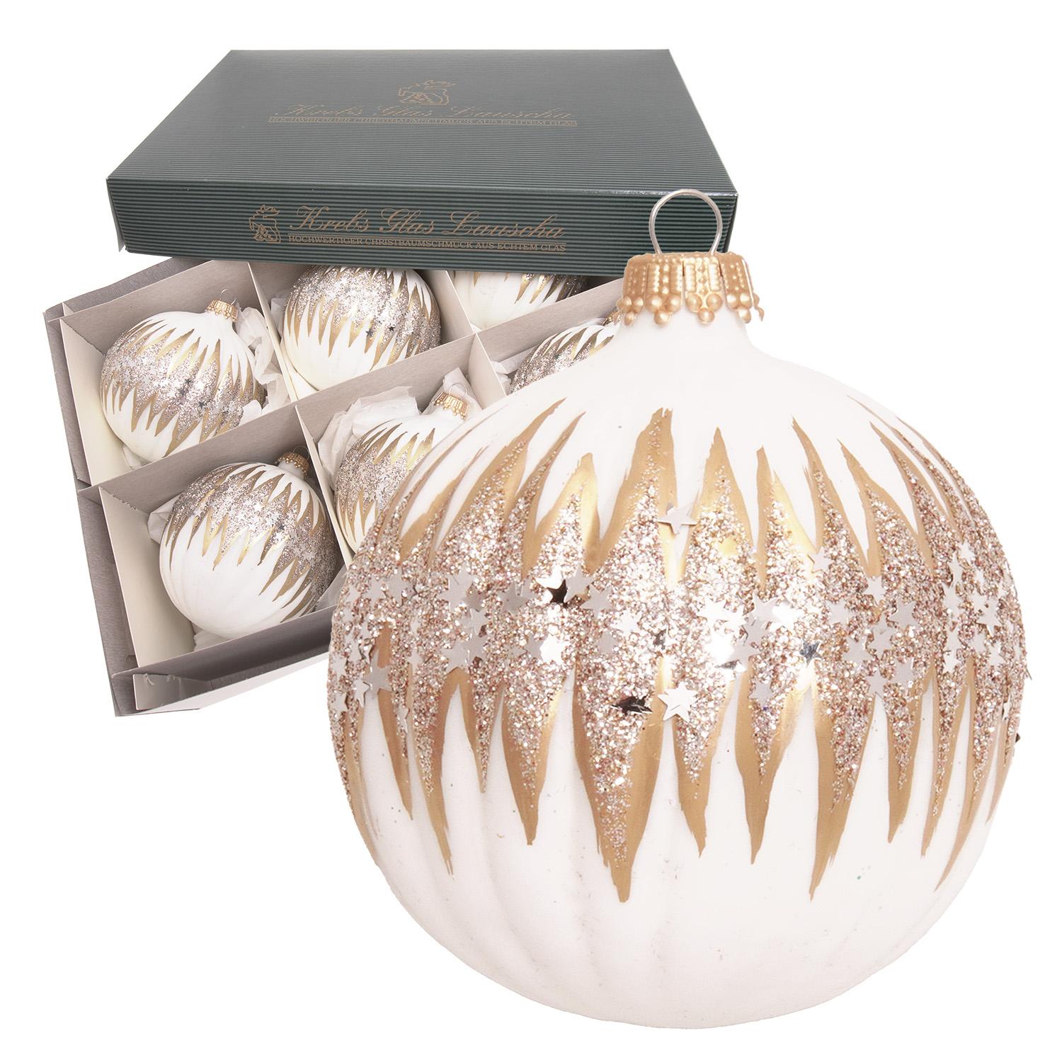 | Titel | Weihnachtskugeln Geriffelt mit Glitter und Sternen Weiß 8cm |