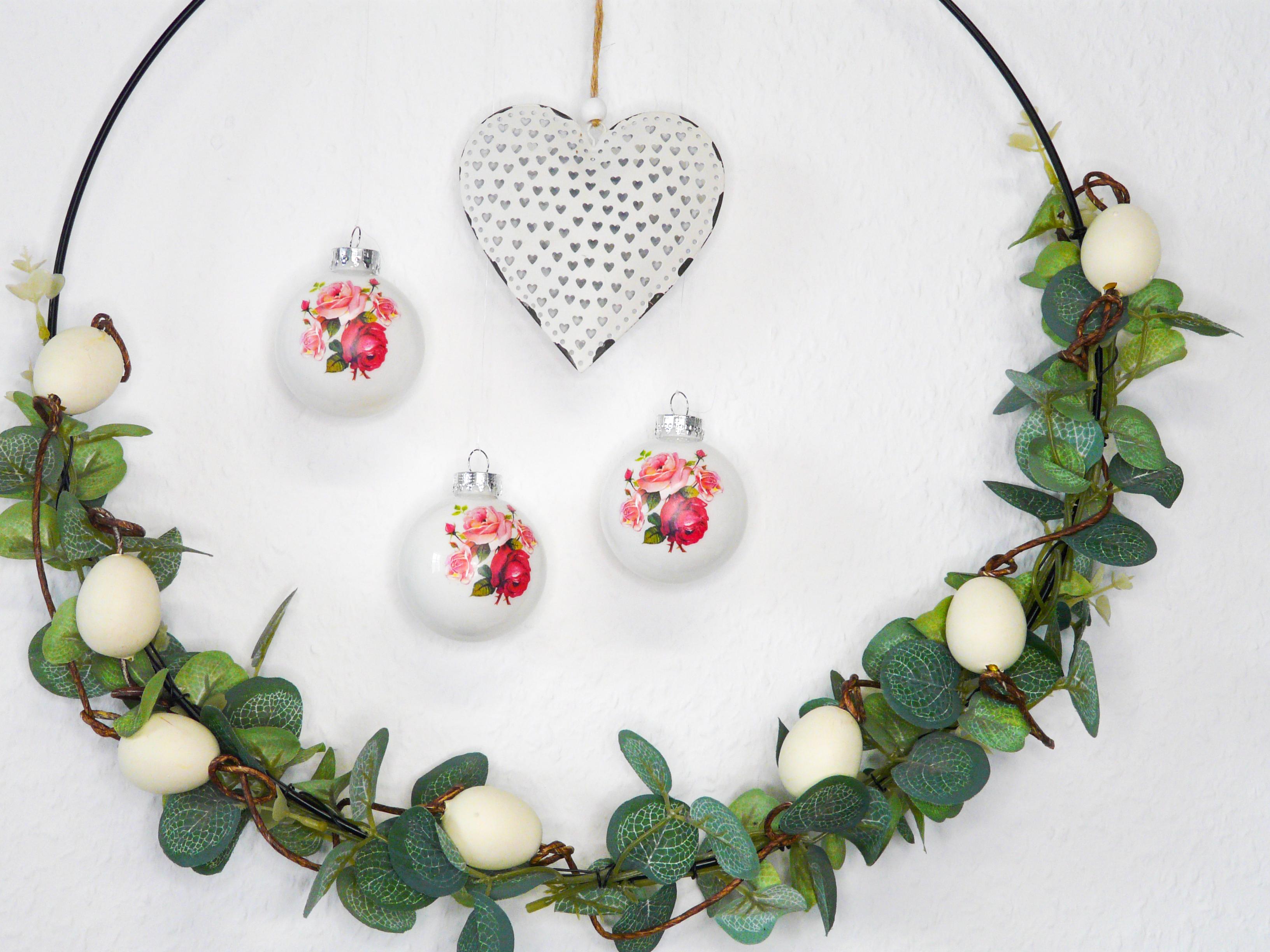Titel | Weihnachtskugeln Stiefmütterchen und Rosen Weiß 7cm |