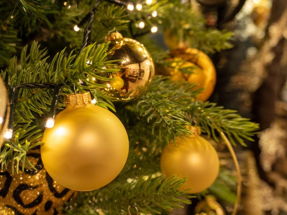 Das Sortiment besteht aus einer Kombination aus Gold Glanz und Satin-Finish, die sich perfekt ergänzen und dem Baum ein luxuriöses Aussehen verleihen.